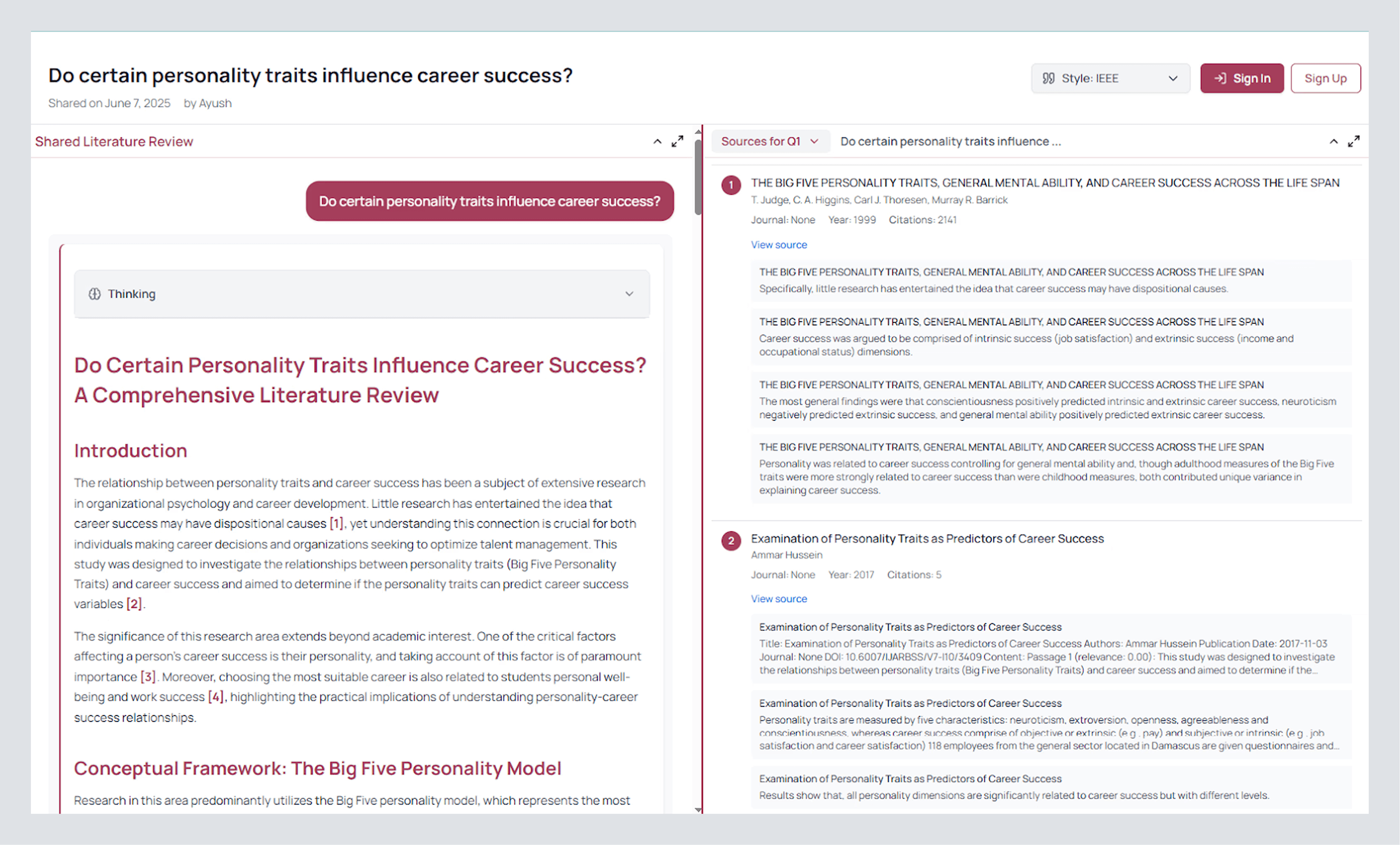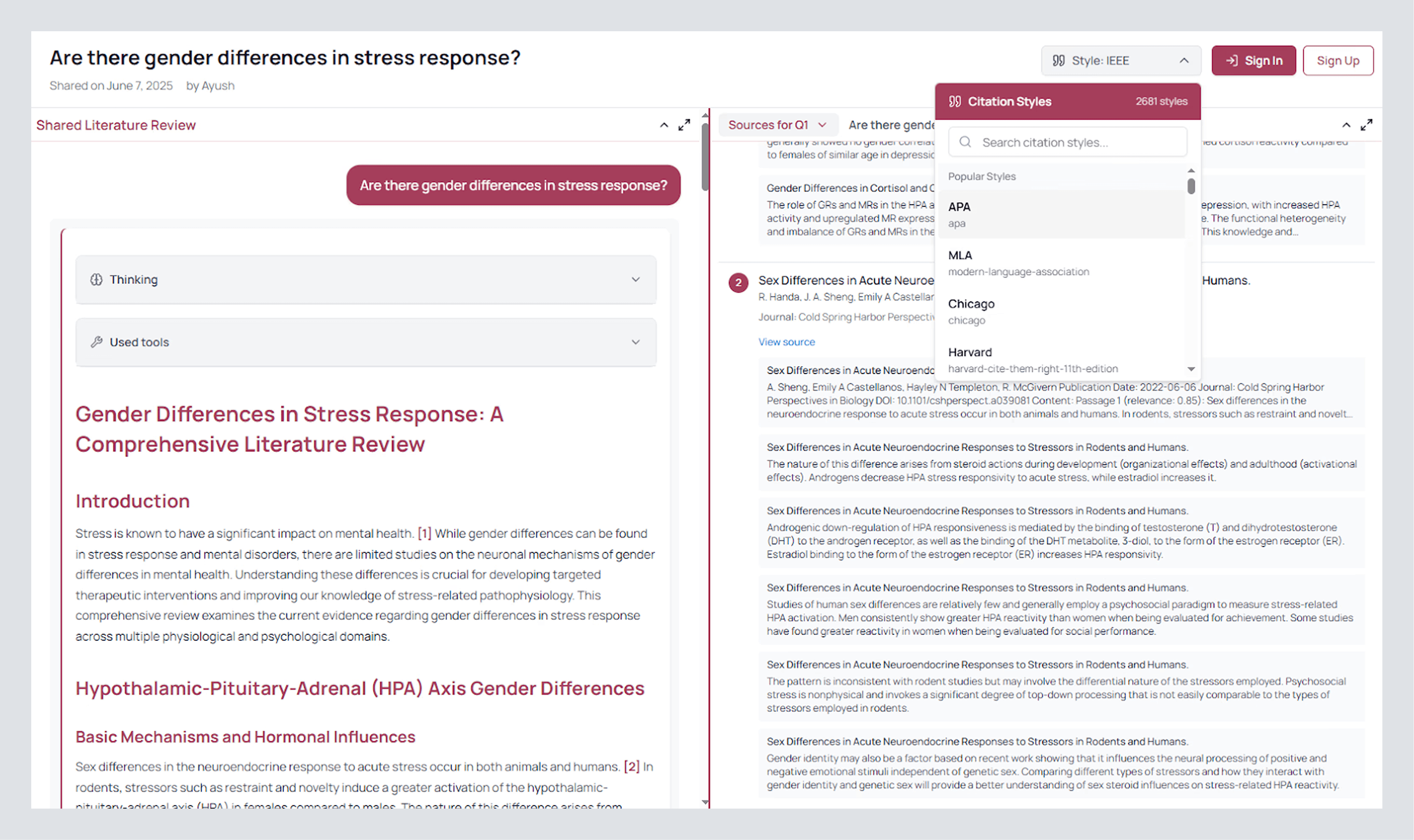Automated Literature Reviews: Generate detailed, citation-rich literature reviews in minutes rather than weeks. Each paragraph comes with linked citations to original research for full transparency and reliability.
