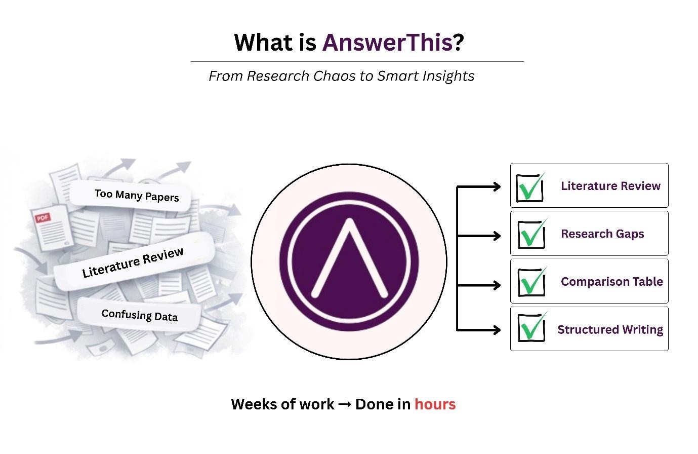 Compared to generic AI tools, AnswerThis provides significant depth in addressing research-specific issues. It automates the synthesis and analysis tasks that typically require weeks of manual effort down to a few hours of work. AnswerThis is especially useful for thesis writing, systematic reviews and academic publishing.