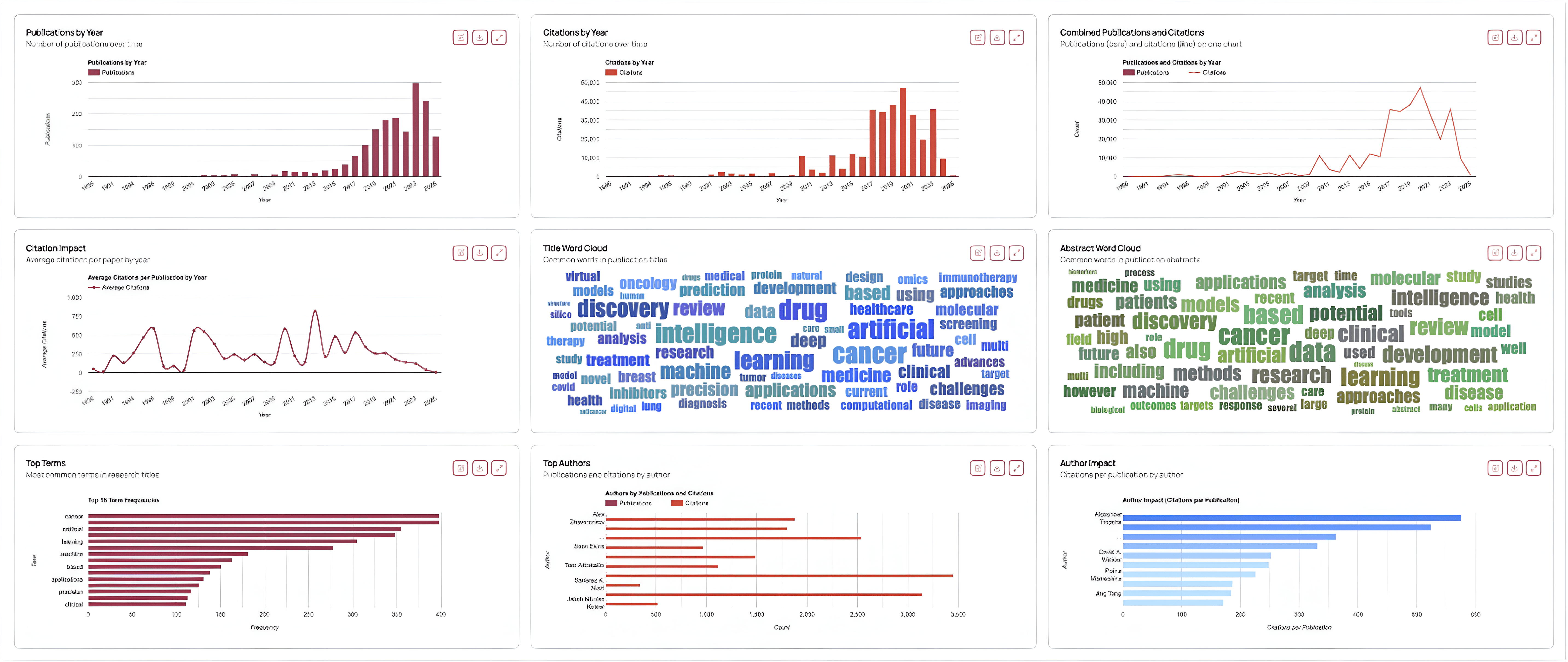 Publication by Year: Shows whether research output is accelerating or plateauing. It’s a great way to identify trends or locate seed papers in your field.