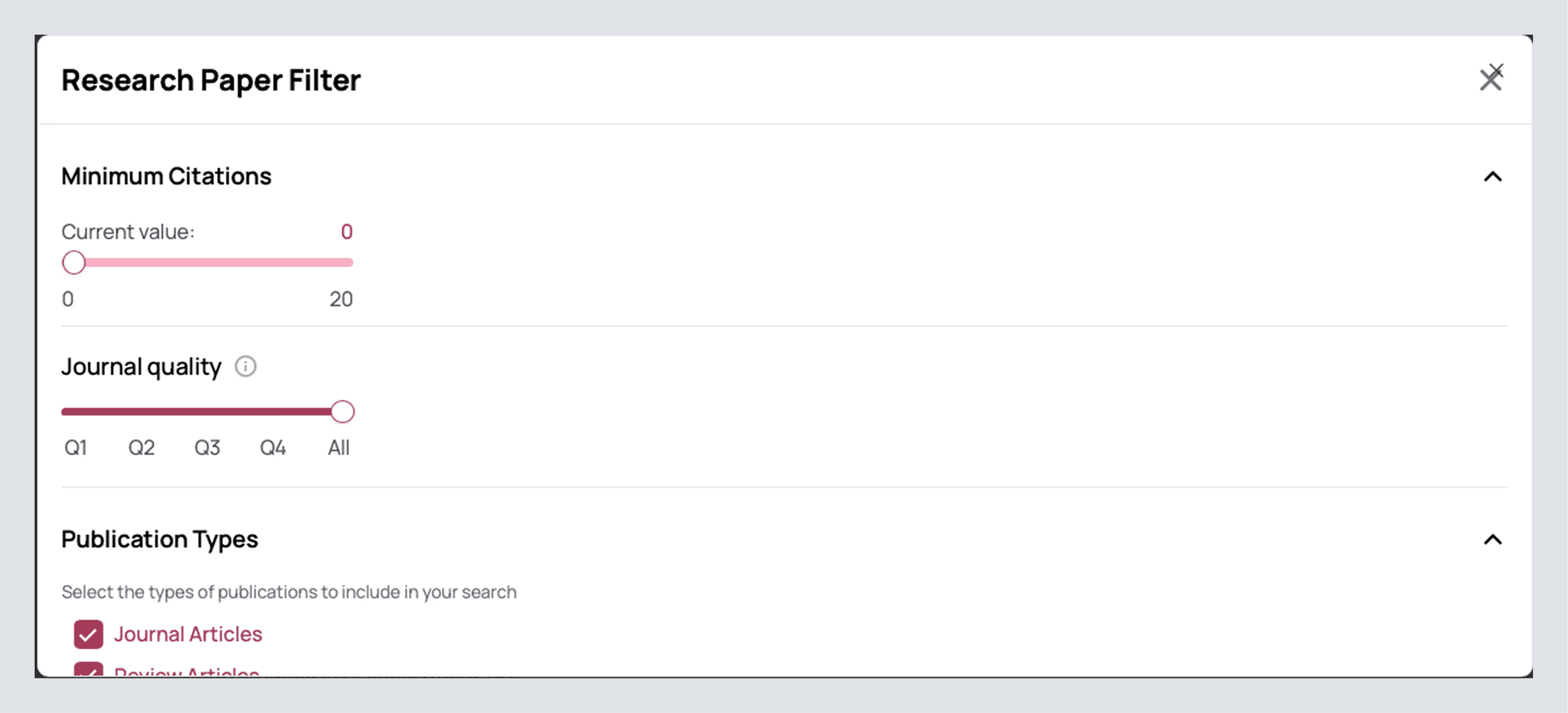 Minimum citations: raise when you want maturity, lower when you’re scouting emerging work.