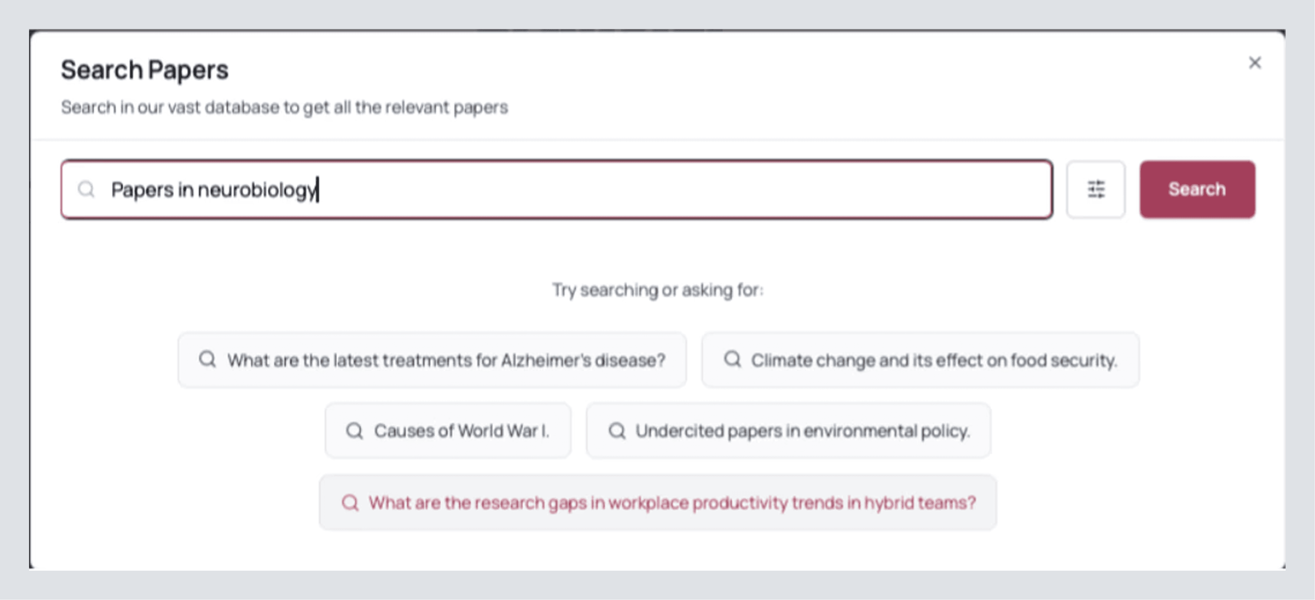 Open Search Papers from the left sidebar to quickly find the exact papers you need in your field.