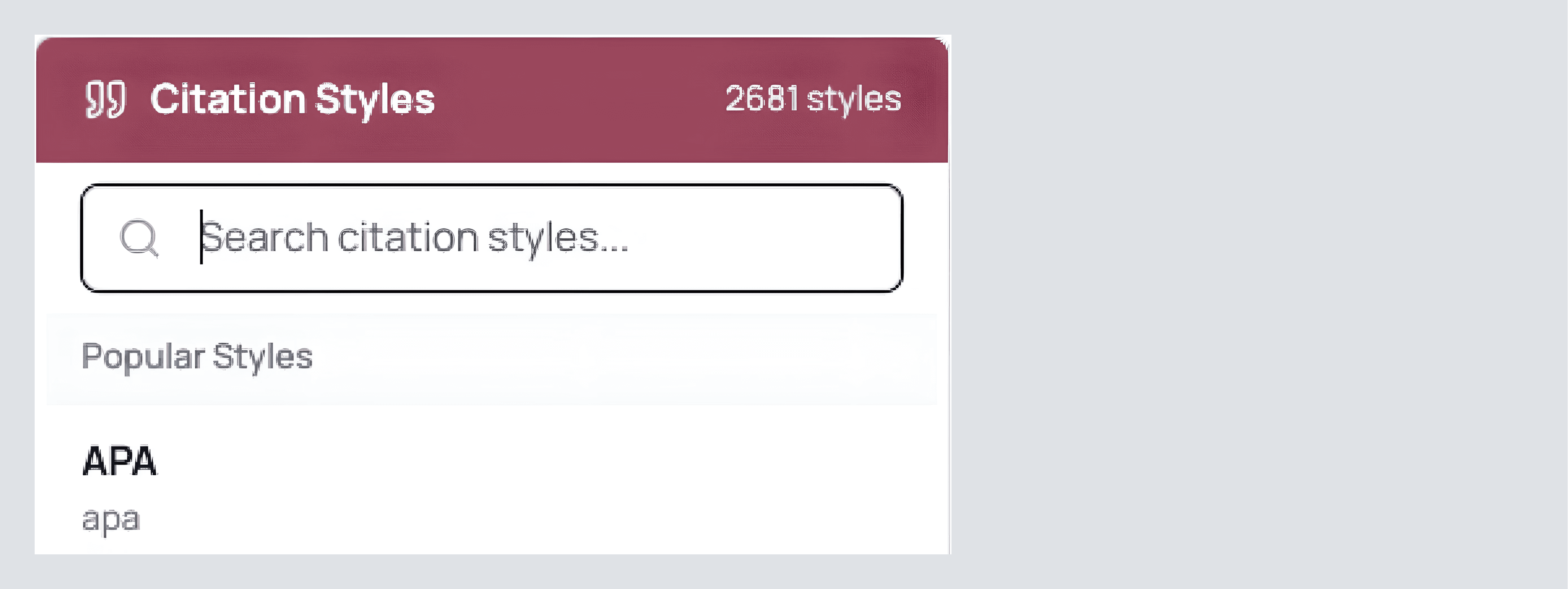 At the top, set your citation style, APA/MLA/Chicago, or one of thousands of others. The review and the sources table update together. Lock this now so you don’t reformat late in the process.