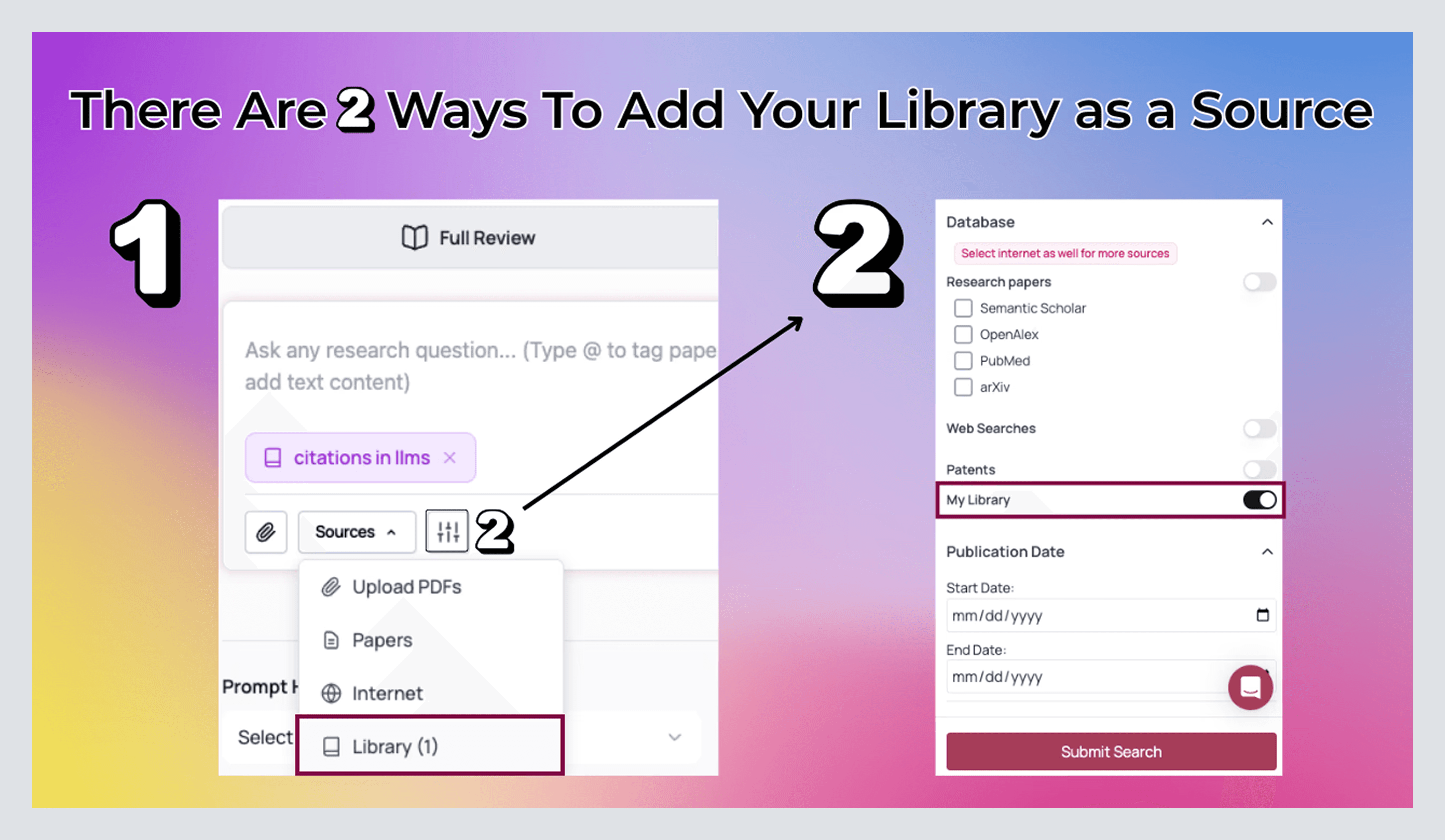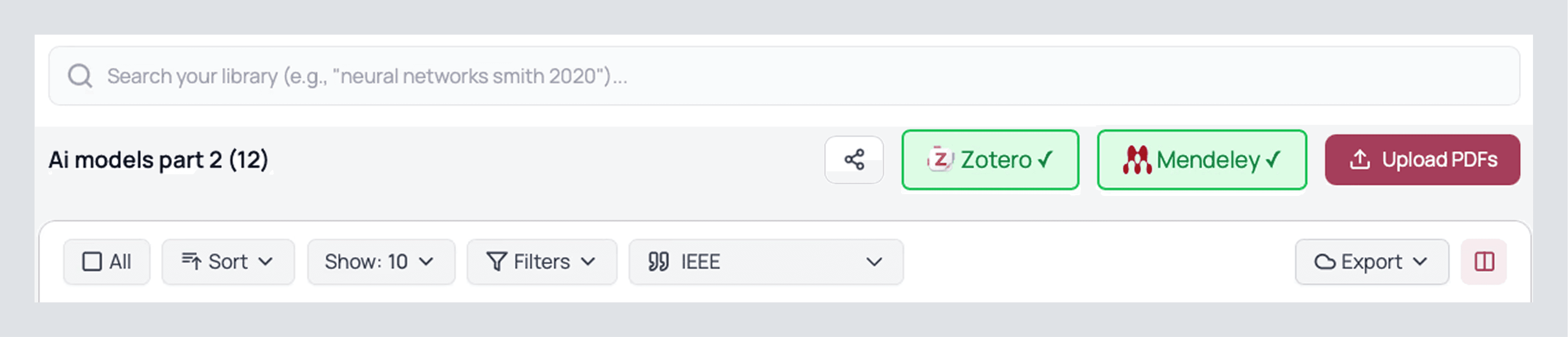 Use a Library as the source of truth in new syntheses. In Full Review and Follow-Up, open More filters and switch on your Library. Now AnswerThis will write using your library.