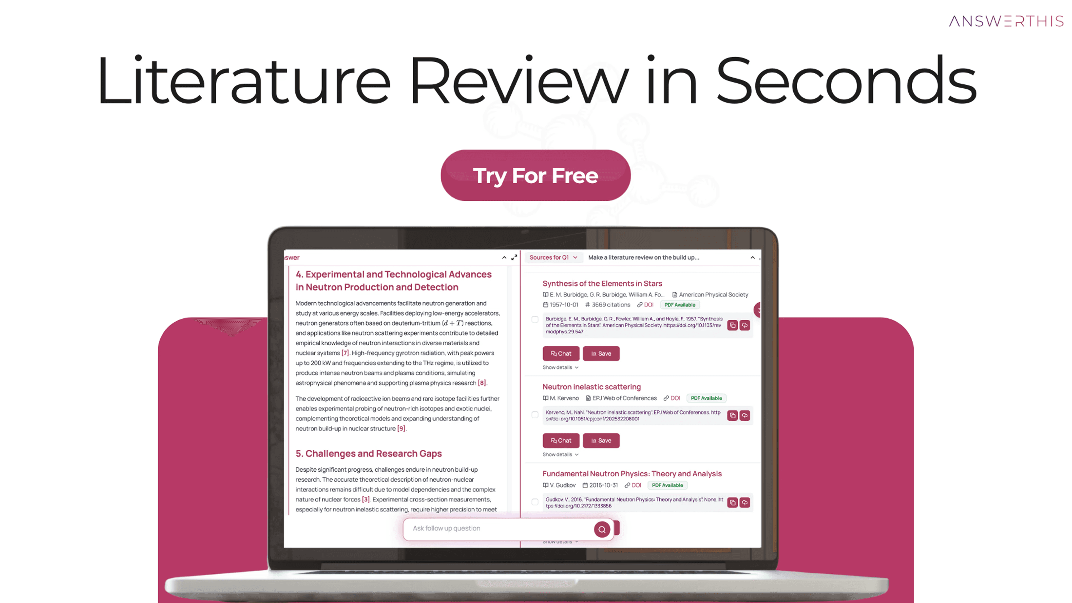 Our tool has significantly improved the quality of researchers’ work while saving them valuable time. Although we’ve worked tirelessly to refine AnswerThis to deliver exactly what you need, it’s your feedback, comments, and suggestions that have truly shaped it into the one-stop research tool it is today.
