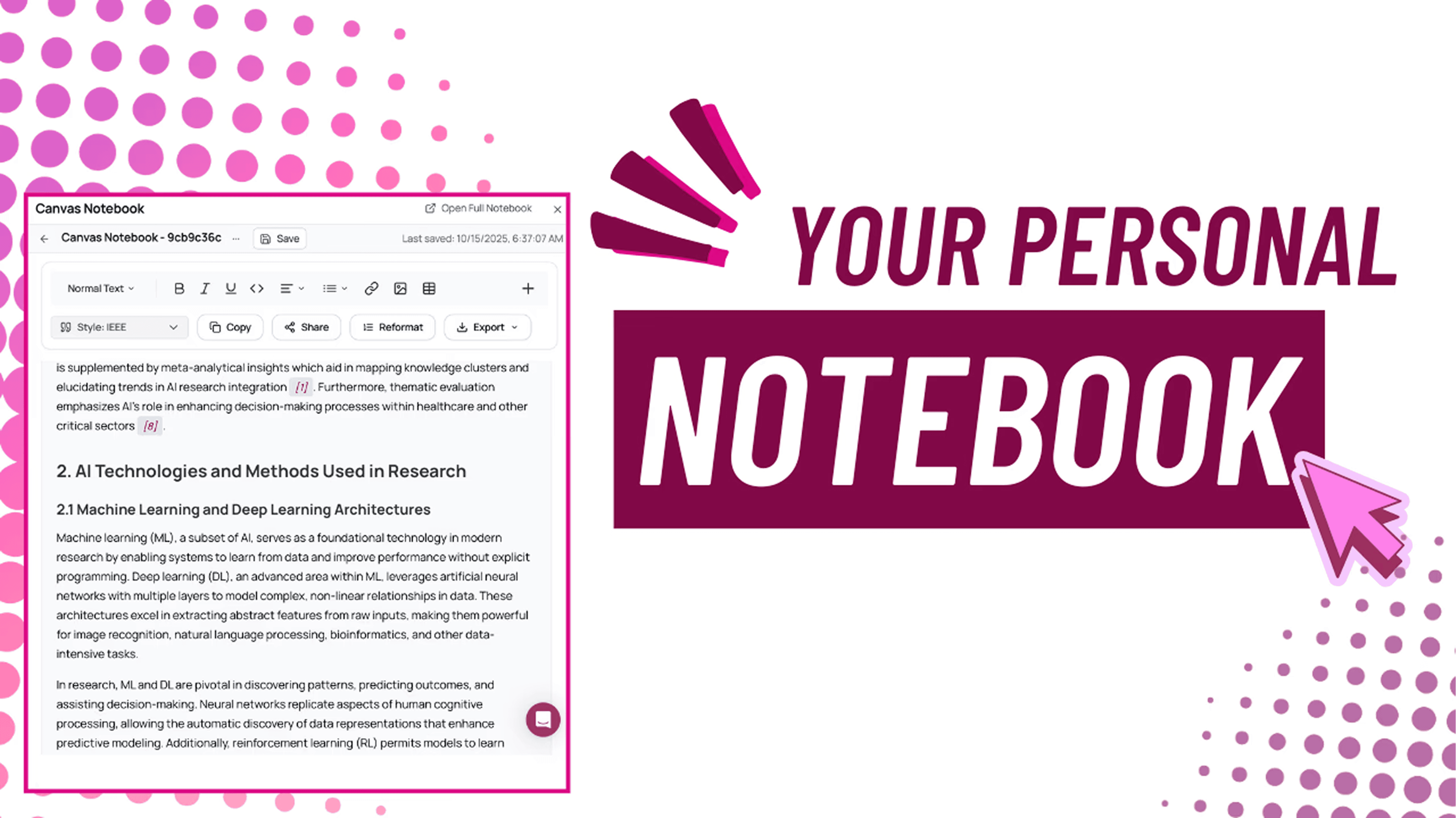 With AnswerThis's new canvas and notebook, this becomes a reality. Our AI will literally handhold you through finding your research gap, honing down on the exact papers you need, and walk with you every step of the way to a reputable, publishable paper, literature review or a project.