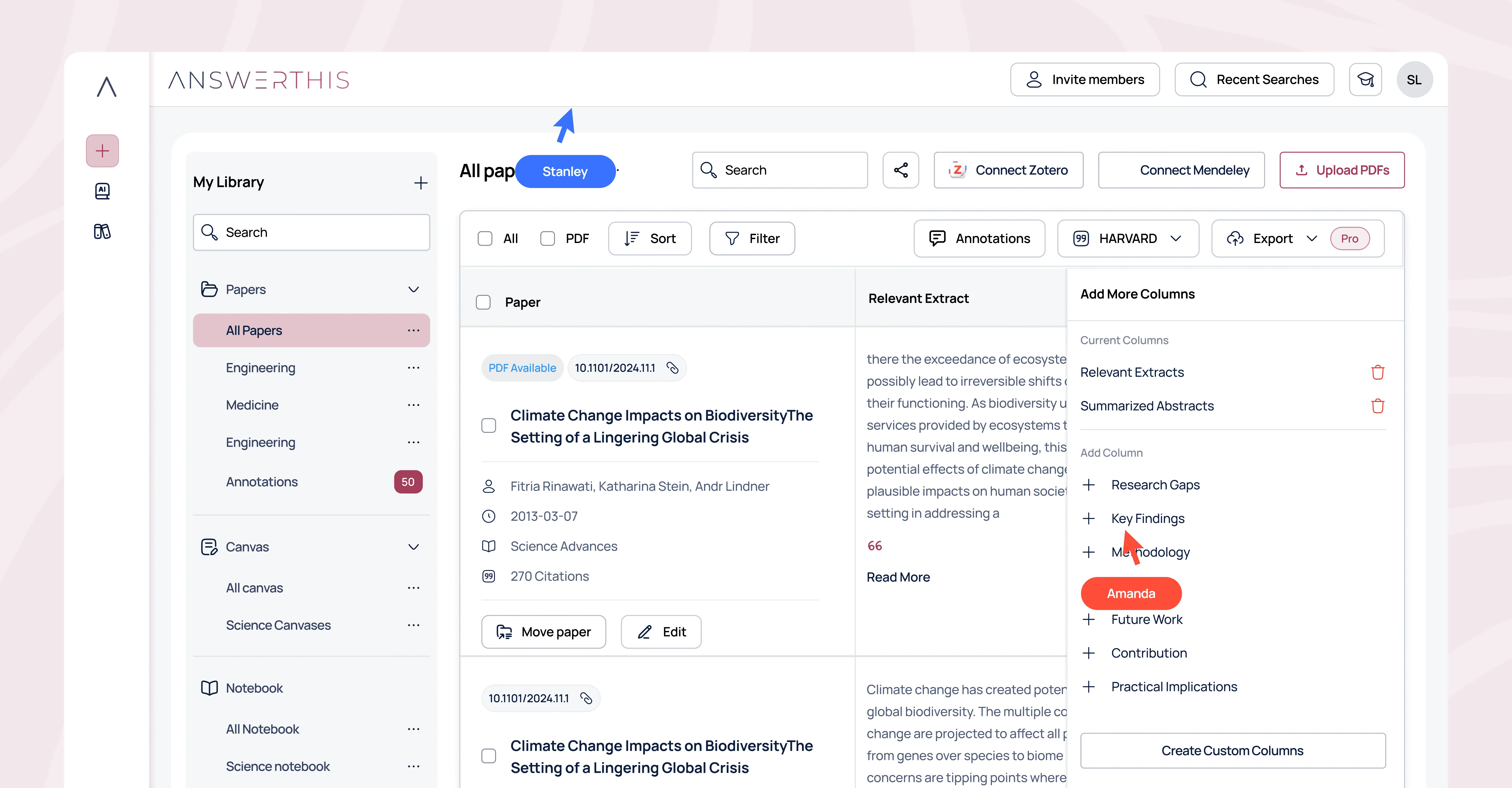 Upload research papers to use AI tools for automatic indexing, extraction, and search..